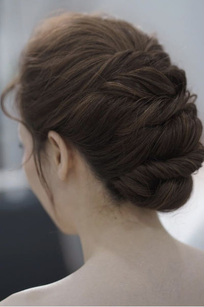 For a sophisticated and posh look that requires less effort, a braided low bun is the way to go. For best results, ensure your hair is smooth and tangle-free. Brush your hair towards the back and use a rubber band to secure it. When done, braid the ponytail.